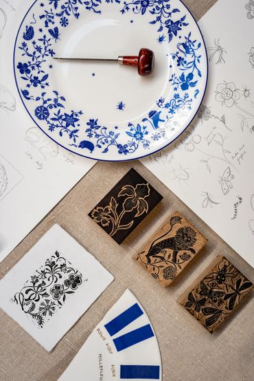 Through her sister company Kinship Press, Naomi has applied the designs to a collection of fine bone china, in collaboration with Xavier Britain. The Millefleur collection is made in the historical potteries, Stoke on Trent and is available to buy at Xavier Britain.